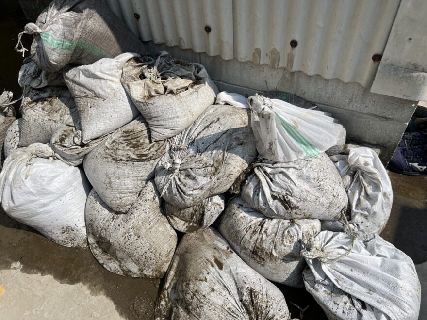 冷却塔内部と充填材に溜まっていたスケールの汚泥